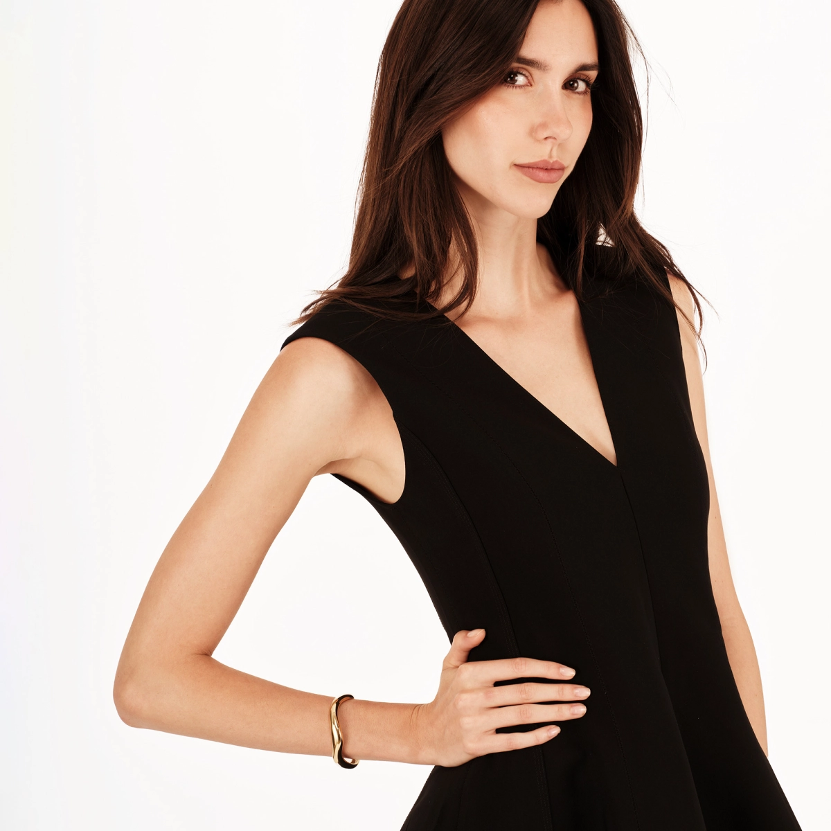 Il bangle Zig Zag è realizzato in acciaio lucido color gold ed è caratterizzato da un design fluido e bombato che avvolge il polso con eleganza.