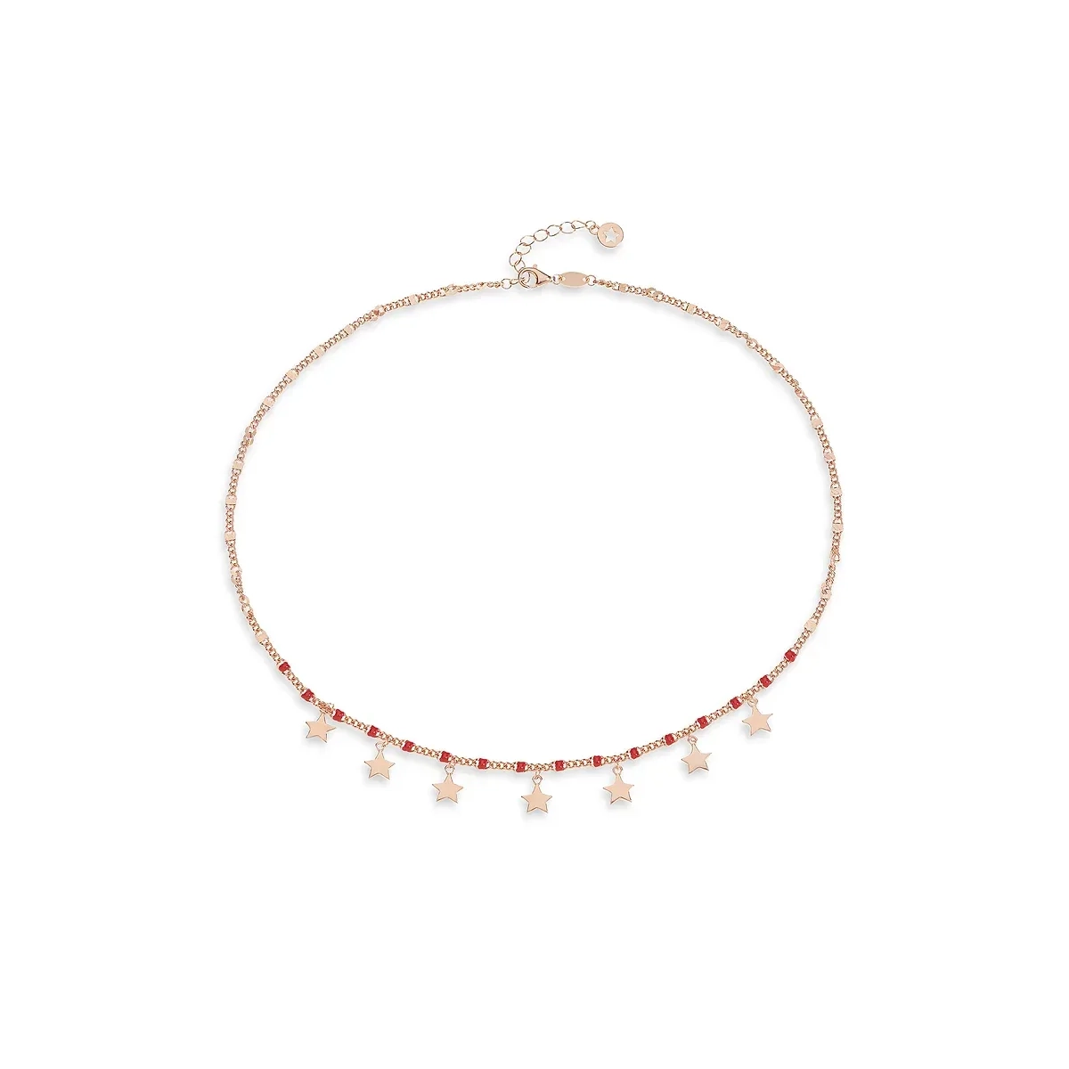 Girocollo in Argento 925% con trattamento di doratura rosè e smalto rosso.