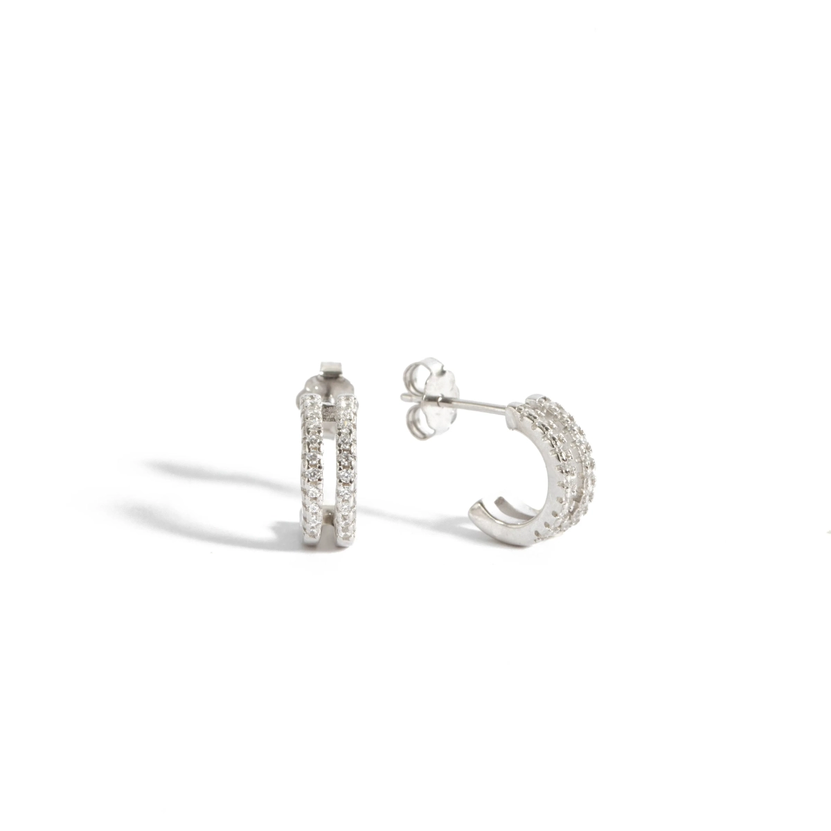 Coppia di orecchini formati da doppio cerchietto di zirconi, con chiusura a farfallina.