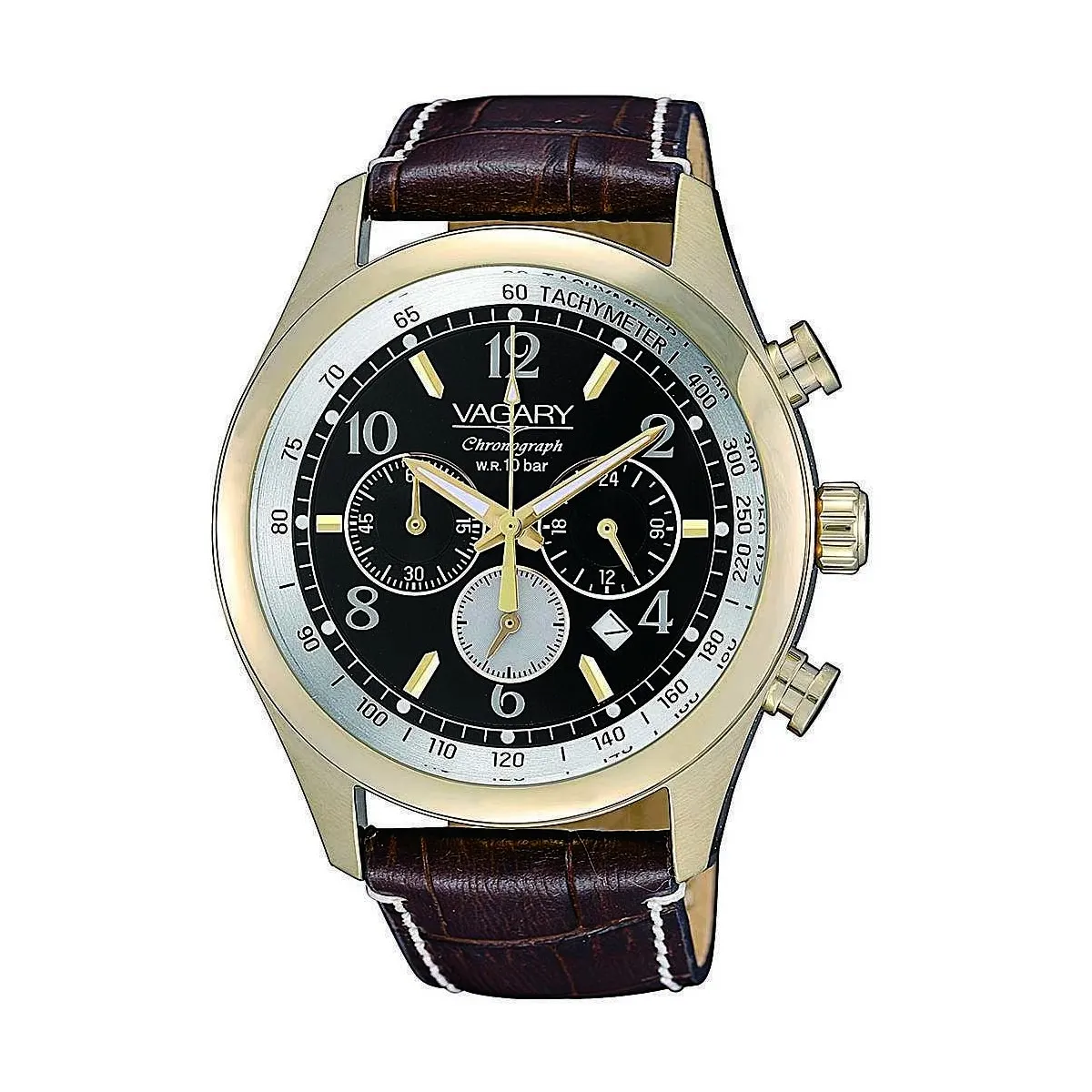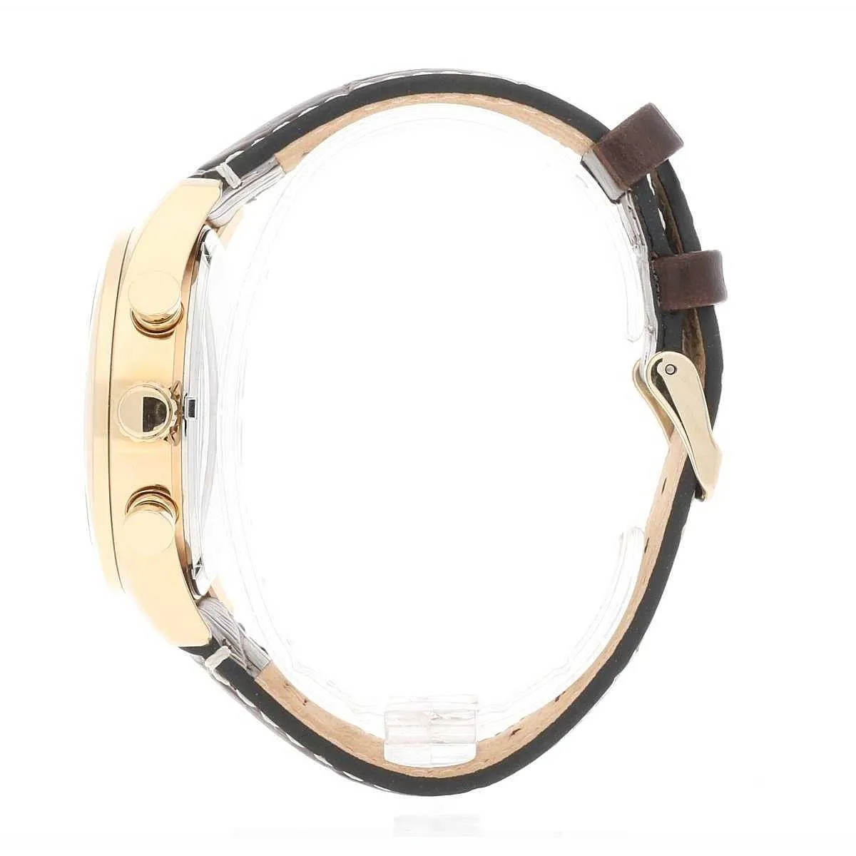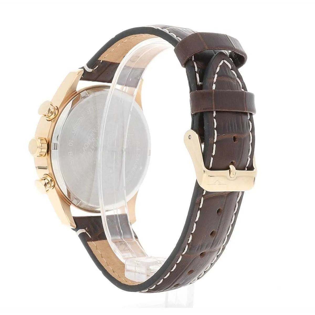 Cronografo Al Quarzo tre pulsanti Cassa dorata con fondo a vite.
