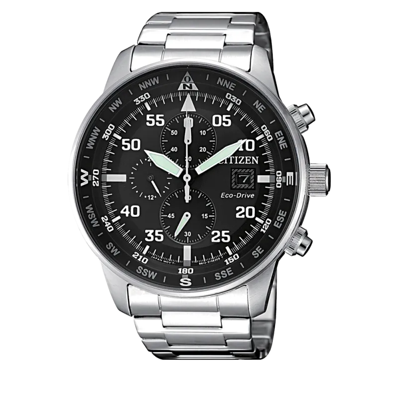 Eco Drive a carica luce con riserva di carica di 270 giorni.