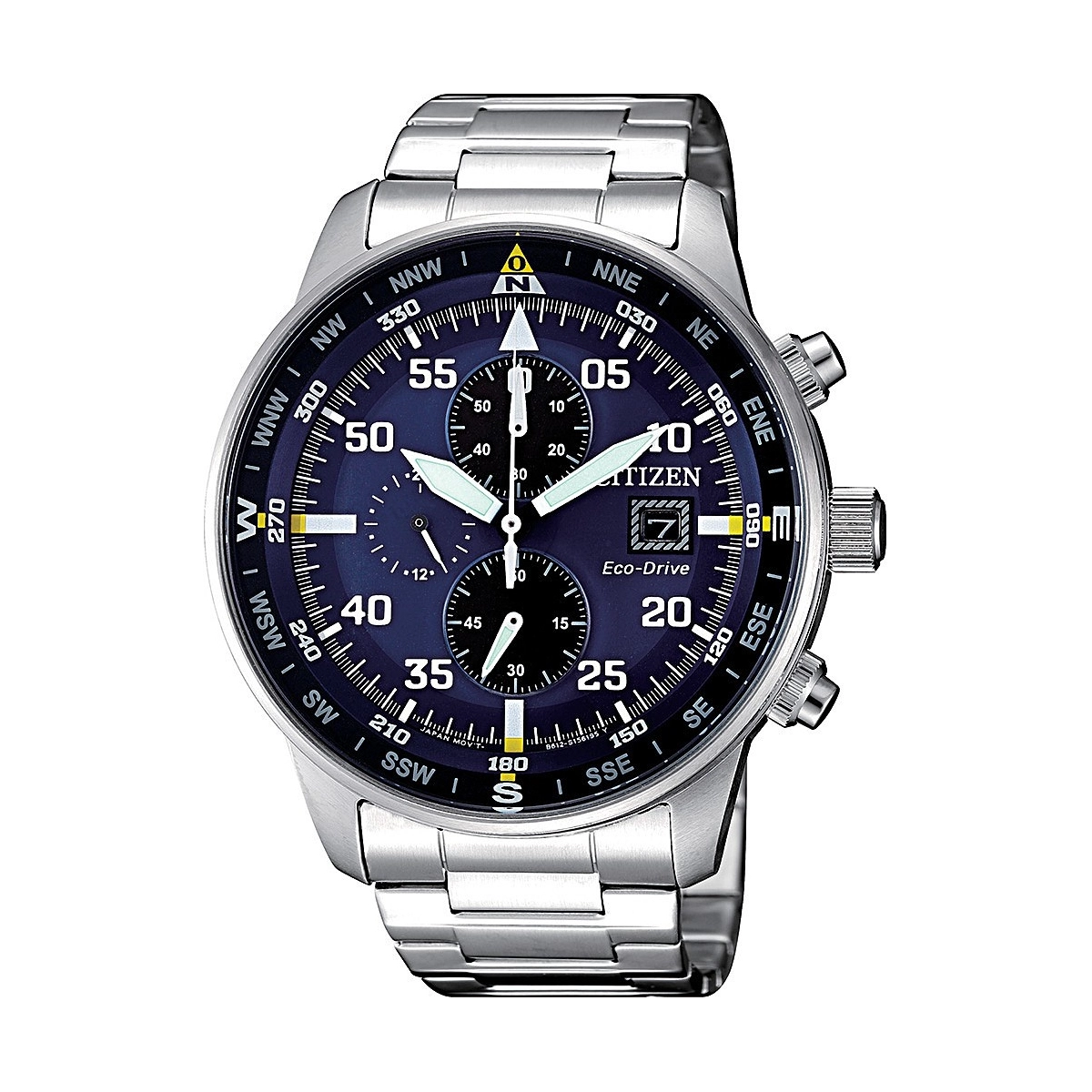 Eco Drive a carica luce con riserva di carica di 270 giorni.