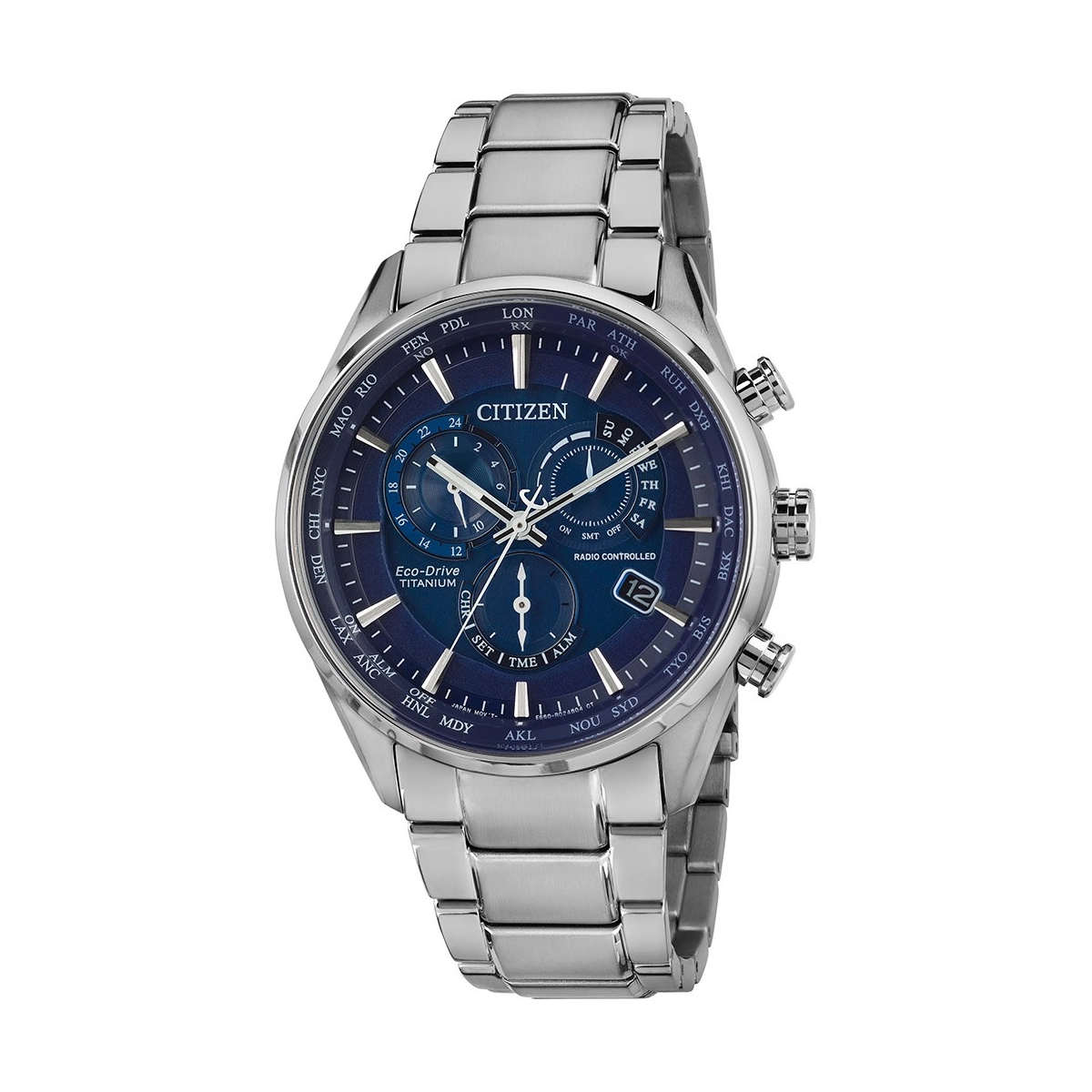 Radiocontrollato a 5 canali: ricezione del segnale orario USA, Europa, Cina, Giappone. World timer con orario di 24 citta' del mondo e ora UTC. Allarme. Cronografo.